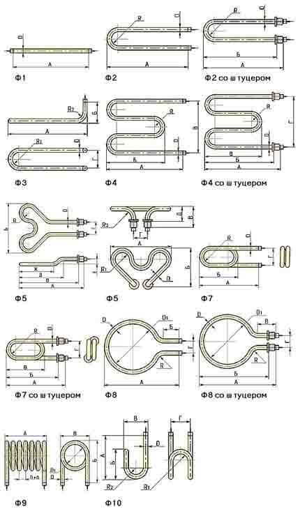 Мы можем изготовить для вас как типовые формы ТЭНов, так и нестандартные нагреватели любых форм и размеров по вашим чертежам.